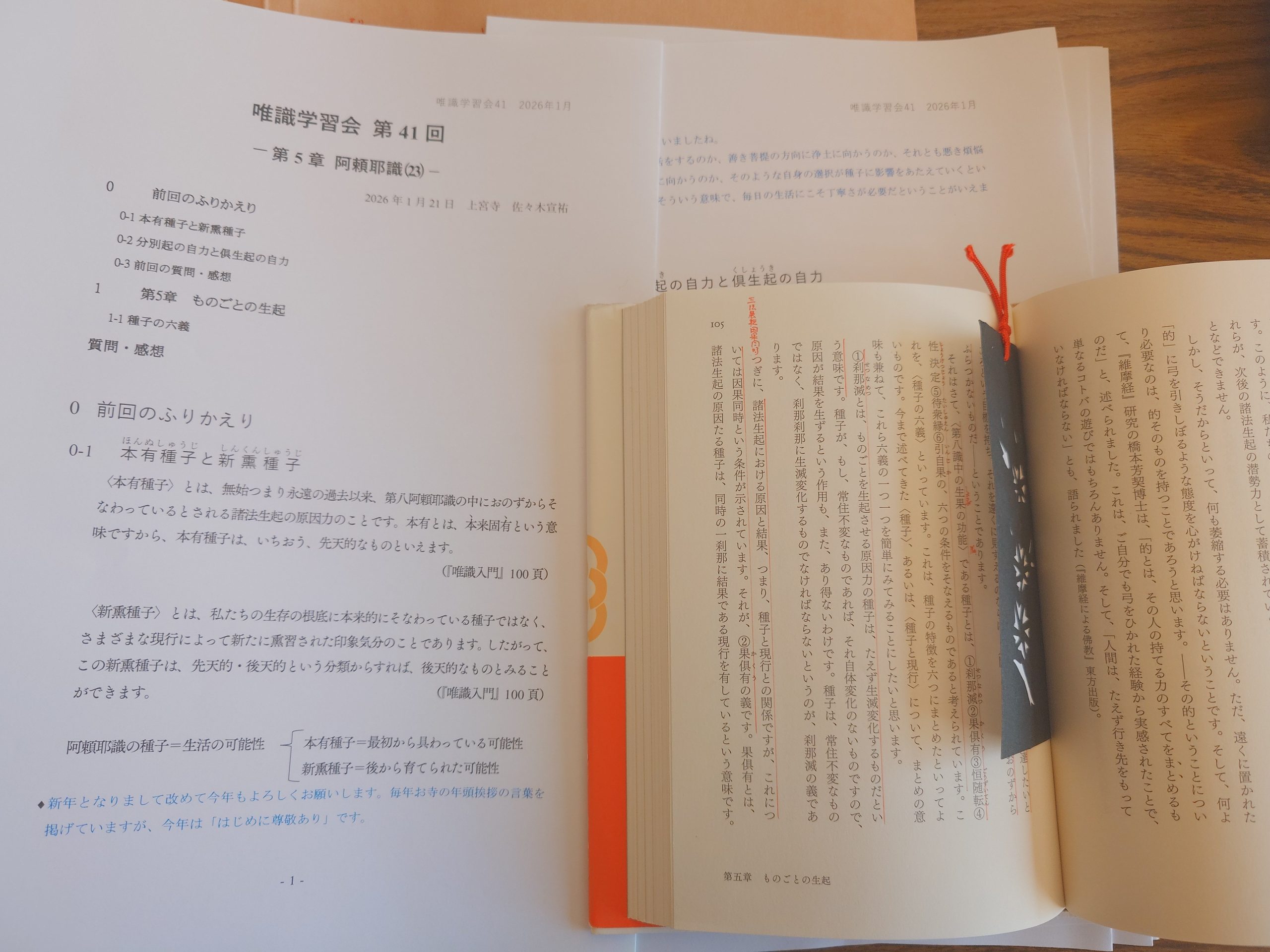 本日1月21日唯識学習会の41回目を開きました。テキストを読みながら唯識仏教の初歩を学ぶ学習会です。