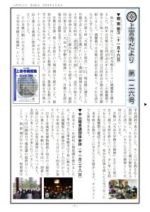 本日2月15日上宮寺だより第126号を発刊しました。上宮寺のご門徒向けのたよりです。今号はお寺の年末年始のたよりです。